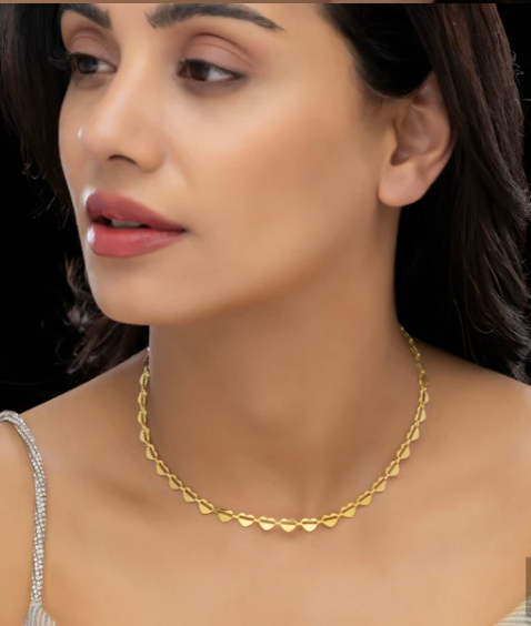 This exquisitely crafted necklace, which has a delicate chain with complex heart-shaped links, exudes elegance and charm. It is the ideal accessory for every event because of its classic design, which stands for grace and affection. Every heart link is expertly made to reflect light, enhancing your appearance with a delicate glitter. Comfort and adaptability are guaranteed by the elegant way the strong yet lightweight chain hangs around the neckline. This piece easily goes with both professional and casual attire, whether it is worn alone for a minimalistic effect or stacked with other necklaces for a fashionable look. A sentimental present for a loved one or a priceless addition to any jewelry collection, it is a statement of grace and affection.